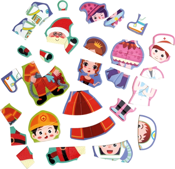 Oplev en kreativ verden af erhverv og eventyrhelte med et magnetisk puslespil, der tilbyder 95 brikker og forlægskort. Børn træner finmotorik, form- og farvegenkendelse og udvikler deres fantasi, mens de lægger puslespil. Takket være den kompakte emballage med låg til at lægge på er legen ideel også på farten.