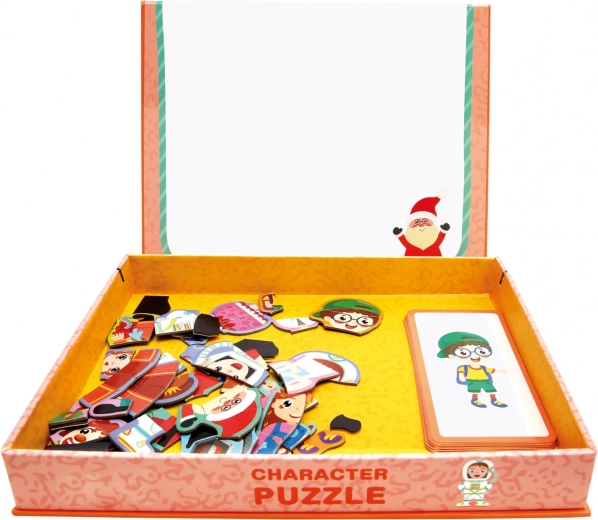 Det magnetiske figurpuslespil giver børn dobbelt sjov: de kan lægge efter forlæg eller lade fantasien arbejde og skabe originale kombinationer. De magnetiske brikker sidder solidt på æskens låg, så de er nemme at håndtere både hjemme og på farten.