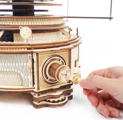 Laserskårne dele i 2 mm lindekrydsfiner passer nøjagtigt sammen. Mekanismen er stabil, dekorativ og bygget til lang holdbarhed.