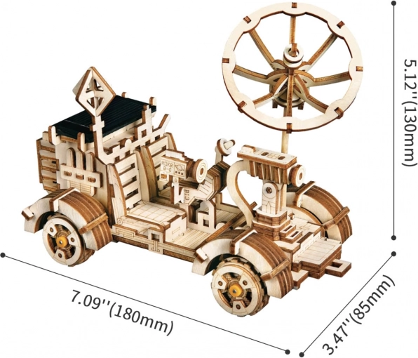Tag på opdagelse på Månen med RoboTime – et 3D træmodel-byggesæt af et solcelledrevet månekøretøj. Modellen med 175 præcist udskårne dele byder på mellem sværhedsgrad, en roterende parabolantenne og selvkørende bevægelse takket være solcellen. Et glimrende valg for rumfartsentusiaster, modelbyggere og nysgerrige teenagere fra 14 år.