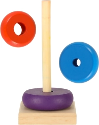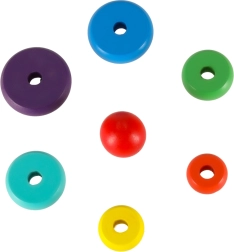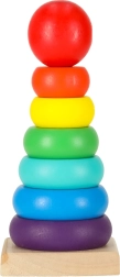 Trælegetøj, kendt for deres enkle design, styrker børns kreativitet og intellektuelle udvikling. Farverigt stabeltårn tilbyder ikke kun underholdning, men også fremmer logisk og kreativ tænkning. At placere ringe på pinden forbedrer motorikken og hjælper med at lære farver.