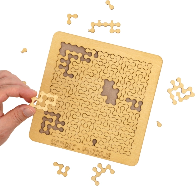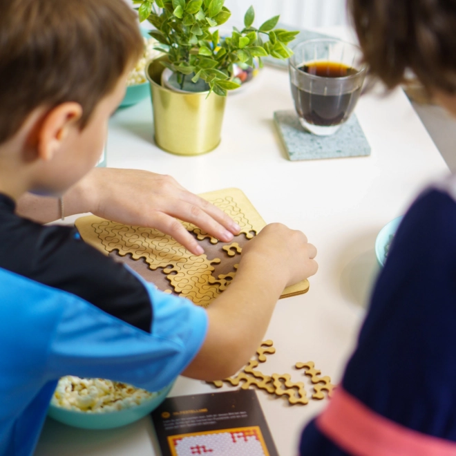 Dette designede træpuslespil er en udfordring for alle, der elsker smarte hovedbrud. Hvert skridt mod løsningen er lidt mere krævende, og vejen til at fuldføre det kræver gennemtænkt strategi, tålmodighed og et skarpt øje. Takket være det solide materiale og den præcise laserudskæring flugter brikkerne perfekt, og samlingen er glidende og behagelig.
