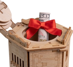 Gør dig klar til et eventyr, hvor du skal knække hemmelighederne i denne smukt udarbejdede boks. Alle dele er præcist udskåret af naturligt birketræ, hvilket giver puslespillet både holdbarhed og et æstetisk tiltalende udseende.