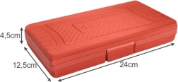 Sættet leveres i en robust plastkuffert, der sikrer, at hvert værktøj har sit eget sted, hvilket væsentligt letter organisering og transport.