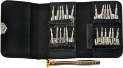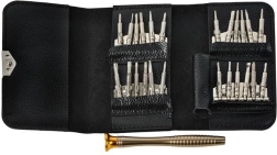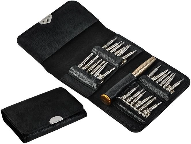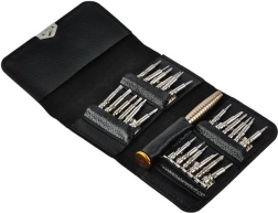 Præcisionsskruetrækkersættet 25-i-1 indeholder i alt 24 udskiftelige bits samt et basisgreb. Det er ideelt til service og reparation af de fleste elektroniske enheder på markedet.