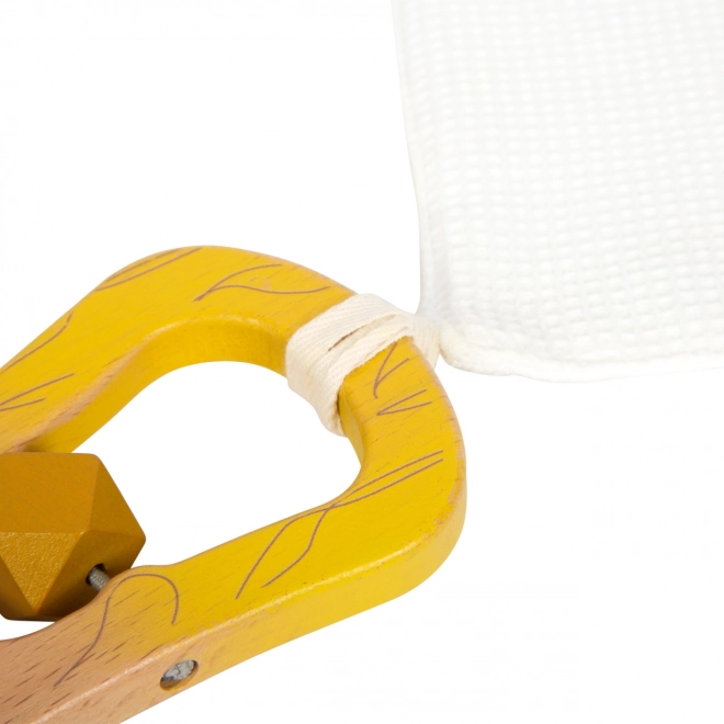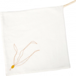 Kan bruges som krammeklud eller savleklud. Har en løkke til nem fastgørelse til ranglen, sutten eller barnevognen.