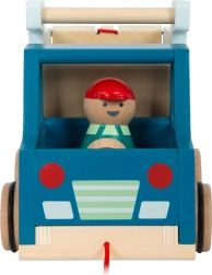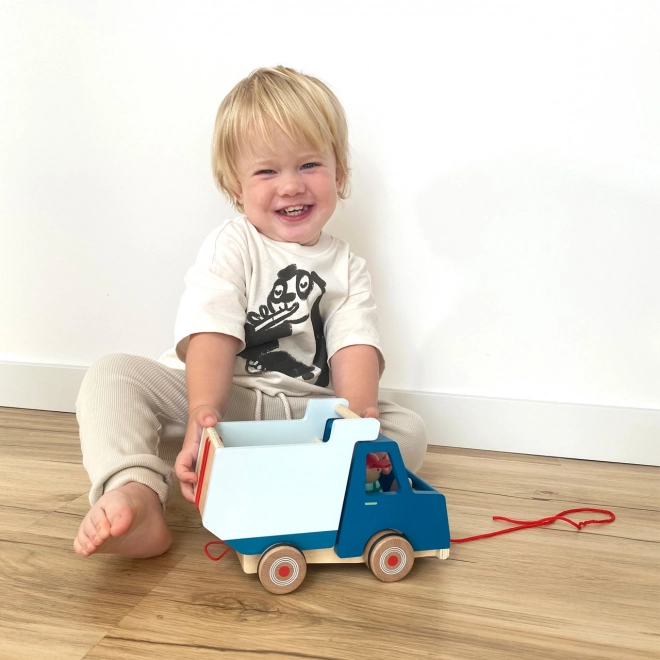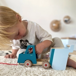 Denne moderne tipvogn i træ er det perfekte legetøj til små bygmestre. Den har et lad, der kan vippes helt, og en chauffør, der gynger under kørslen, hvilket giver ekstra sjov. Med gummibelagte hjul bevæger den sig stille og glidende.