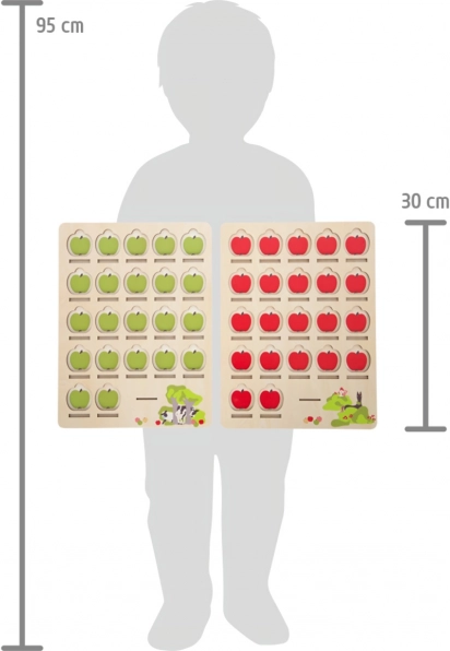 Farverige illustrationer af dyr og æbler på solide plader indbyder til leg og tåler samtidig intensiv brug af børn. Ideel til gentagne spil hjemme og på farten.
