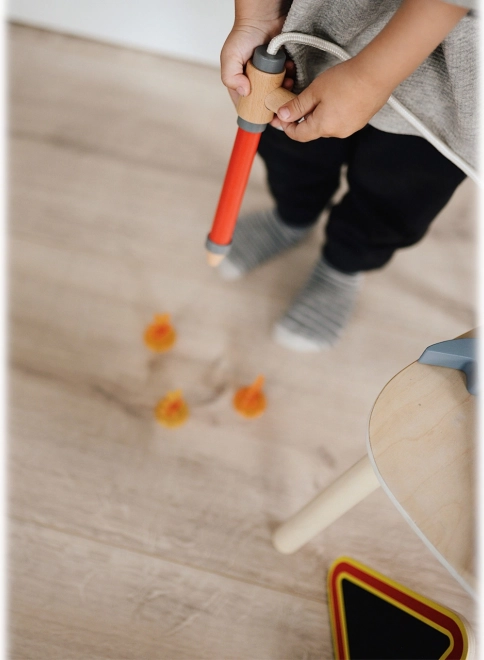 Sættet inkluderer en “slange” i træ og en sprøjte, så børn nemt kan “slukke” enhver lille flamme. Understøtter fantasi og udvikling af finmotorik.