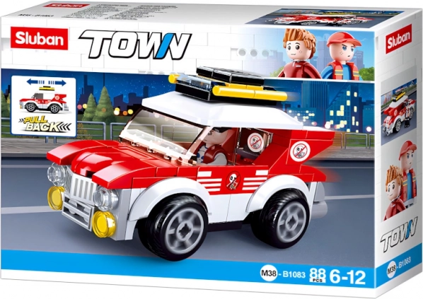 Byggesættet Sluban Town racerbilen giver masser af sjov for børn fra 6 år. Takket være den optræksdrevne motor farer bilen afsted efter optræk og byder på masser af action. Sættet indeholder også en minifigur med roterende og bevægelige kropsdele, som giver løbene et realistisk præg.
