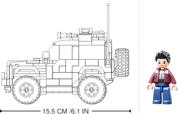 Indeholder 1 minifigur og en model med proportioner, der passer til både by- og terrænscenarier. Ideel til både byggeri og udstilling.