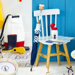Sikkerhed kommer først: en særlig mekanisme beskytter børns fingre ved lukning. Takket være samarbejdet med den franske flåde har denne paraply en autentisk maritim karakter, som både børn og voksne, der plejer deres indre barn, vil elske.