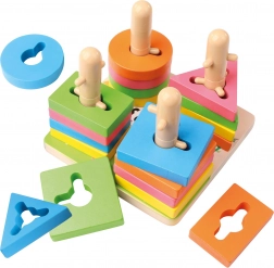 Farverige geometriske brikker med udskæringer hjælper børn med naturligt at genkende former og farver, samtidig med at logik og koncentration udvikles.