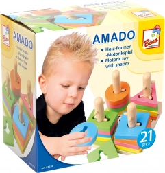 Denne kvalitets træ-perlespil tilbyder 21 farvede brikker og en stabil base med pinde. Takket være de smart udformede huller og pinde øver børn parring af former, genkendelse af farver og rumlig opfattelse. De kompakte mål 15 × 11,5 × 15 cm gør det nemt at opbevare og lege ved bordet eller på en måtte.