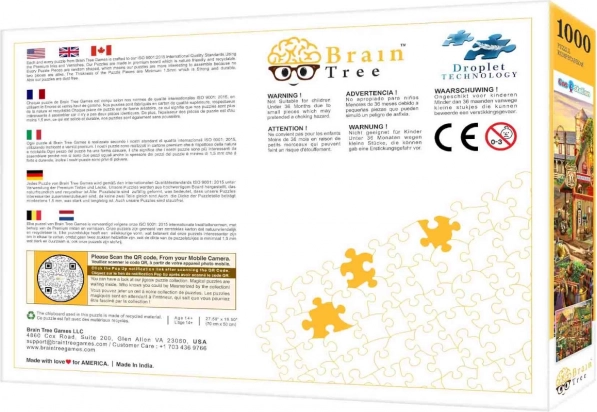 Stilfulde Brain Tree-puslespil med motiv af en landlig tankstation tilbyder 1000 unikt formede brikker, mat overflade med førsteklasses tryk og rigt tilbehør for behagelig lægning. Nyd varierede brikkeformer, plakat i puslespilskvalitet, praktiske sorteringsrum, lågstativ samt en robust genlukkelig pose til beskyttelse af brikkerne.