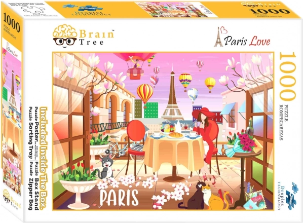Puzzle Brain Tree Kærlighed fra Paris med 1000 brikker udmærker sig ved førsteklasses kvalitet for gnidningsfri lægning og et perfekt slutbillede. Takket være den matte finish blænder motivet ikke og forbliver let at se i forskellige lysforhold. Tilfældige former på de enkelte brikker øger både underholdning og sværhedsgrad, og hver brik er virkelig unik.
