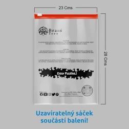 Sorteringsbakker i karton, plakat med tryk i høj kvalitet, lågstander og en robust genlukkelig pose til sikker opbevaring af brikkerne.