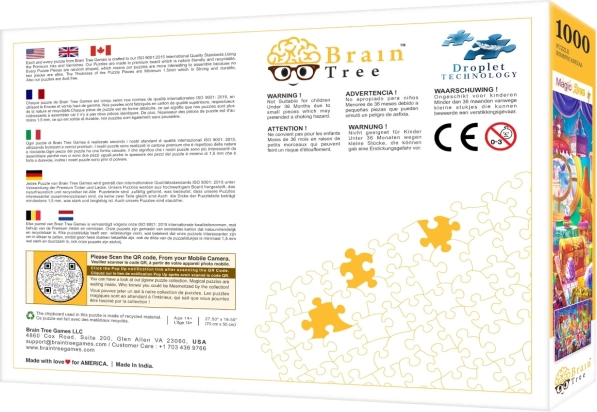 Puzzle Brain Tree Magiske Kammer imponerer ved første blik med sin kvalitetsmatte tryk, der gør selv de mindste detaljer tydelige under forskellige lysforhold. Samling med 1000 brikker er en sand oplevelse takket være deres tilfældigt skårede former, der bringer eventyr og sjov ved hver samling.