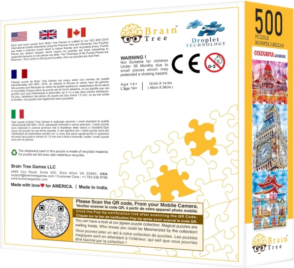 Oplev magien ved at lægge puslespil med denne unikke kollektion fra Brain Tree, der viser verdens farverige mindesmærker. Lægningen bliver et eventyr takket være de tilfældigt udskårne brikformer, som sikrer endeløs underholdning og udfordring for alle puslespilsentusiaster.