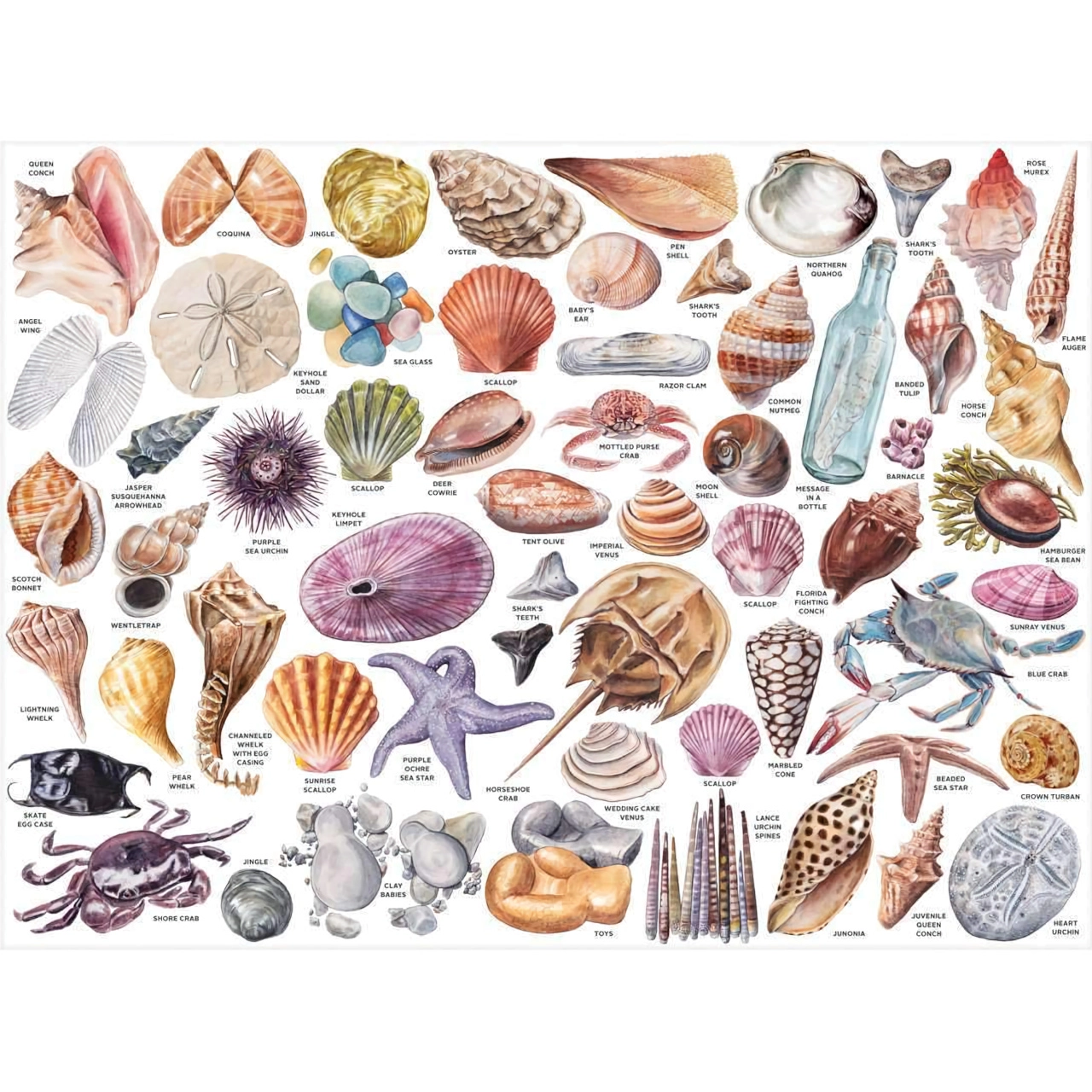 Puslespil baseret på licensen til værket The Beachcomber’s Companion [Strandfinnerens håndbog] af Anna Marlis Burgard, en kendt amerikansk rejsende og forfatter samt skaber af multimedieprojekter. Motivet gengiver trofast skaller fra mange forskellige dyr samt andre skatte, man kan finde på stranden. Nogle af elementerne er udformet som selvstændige brikker i finurlige former, der giver en frisk variation i lægningen. Illustrationerne er af Jillian Ditner, en videnskabelig illustrator især kendt i Nordamerika. Galison-puslespil fremstilles med en betydelig andel genbrugspapir og trykkes med sikre, førsteklasses farver. De har en mat overflade, som sikrer naturtro detaljer og farver under alle forhold. Bagsiden er belagt med en glat, behagelig overflade, der forhindrer støvdannelse ved opbevaring af et udlagt puslespil. Sammen med de omhyggeligt pakkede brikker finder du i æsken også et referenceark med motivet, som ofte indeholder flere oplysninger om skabere og værkets baggrund. Leveres i en særdeles robust og iøjnefaldende kartonæske lavet af genbrugskarton og bæredygtigt indvundne materialer med FSC®-certificering. Hovedegenskaber: 1000 præcist udstansede brikker, heraf 20 med unik form; fremstillet med genbrugte og bæredygtigt indvundne materialer; nøje udvalgt motiv fra anerkendte skabere og kunstnere; tryk og udførelse i højeste kvalitet; inkluderer referencebillede.