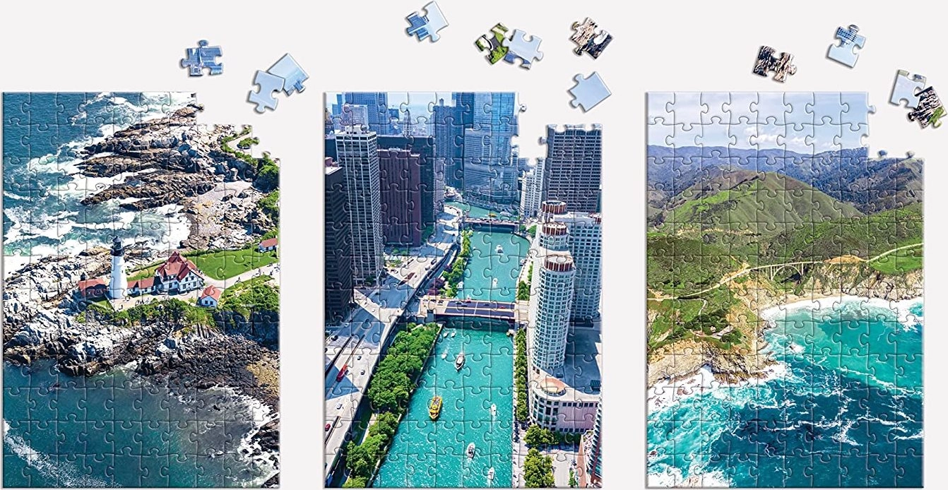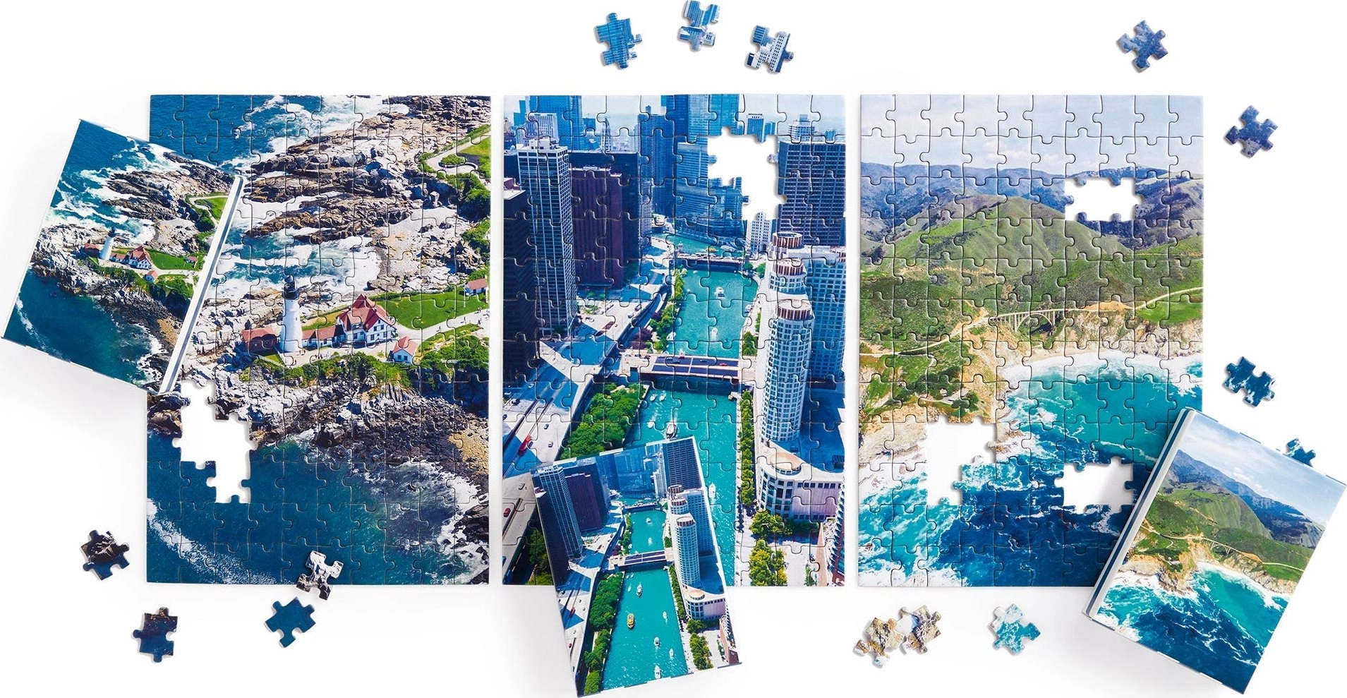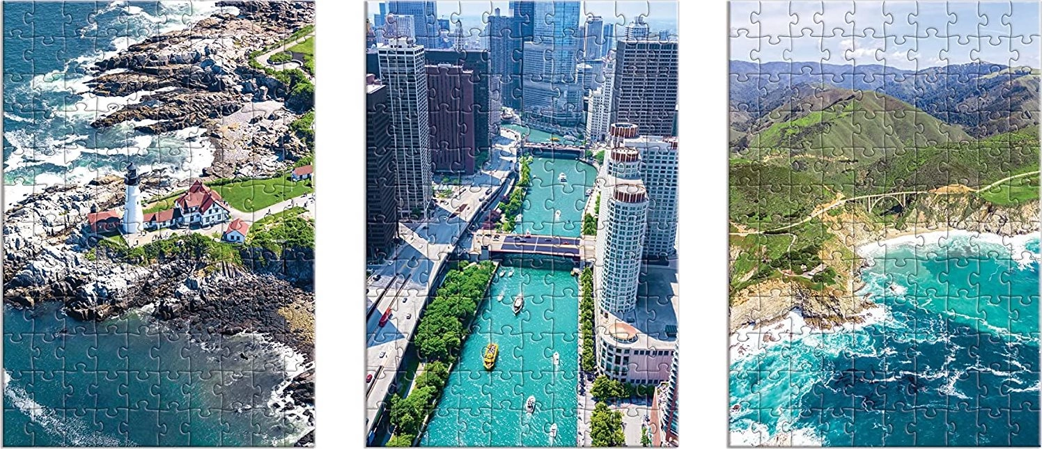 Denne eksklusive kollektion omfatter tre separate puslespil med ikoniske motiver fra Maine, Chicago og Big Sur, der bærer fotografen Gray Malins umiskendelige stil. Hvert puslespil er pakket for sig i en attraktiv æske, så du kan give dem enkeltvis eller nyde dem som et samlet sæt.