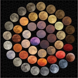 Motivet er skabt ud fra astrofotografier af Marcella Julia Pace, taget forskellige steder i Italien gennem ti år. Hvert billede viser, hvordan farverne ved fuldmåne ændrer sig – fra røde og gule nuancer ved horisonten til sjældne blå toner forårsaget af støvpartikler i atmosfæren.