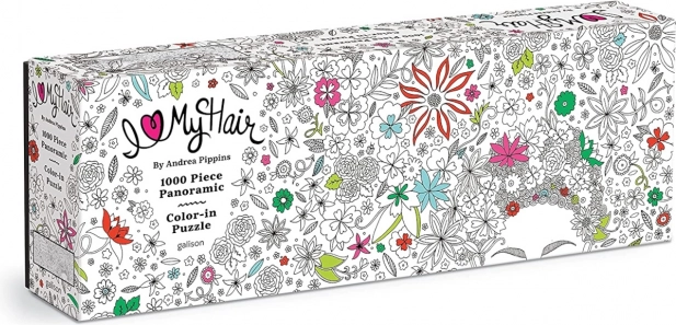 Panoramapuslespillet I Love My Hair forener glæden ved at lægge puslespil med den kreative frihed ved farvelægning. Det sort-hvide motiv med blomster og hårornamenter indbyder til at udtrykke din egen fantasi – farveblyanter eller tuscher forvandler motivet til din unikke dekoration.