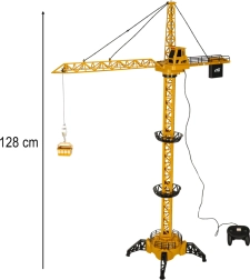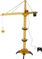 Denne gul-sorte RC-kran er et fremragende valg til børn, der elsker byggemaskiner. Modellen er beregnet til hjemmesamling og tilbyder realistisk styring af bommens rotationsretning samt sænkning og løft af last ned i den medfølgende skål. Den sjove stemning sikres af lys- og lydeffekter, som får legen til at føles som på en rigtig byggeplads.