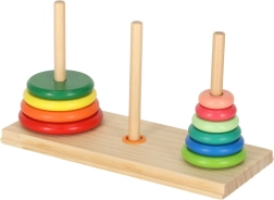 Dette tidløse logikspil træner tålmodighed og koncentration: Opgaven er at flytte alle skiver fra den første pind til den sidste, så de igen er arrangeret fra størst til mindst – man må kun flytte én skive ad gangen, og en mindre skive må ikke ligge under en mindre. Det lyder enkelt, men udfordrer både børn og voksne.