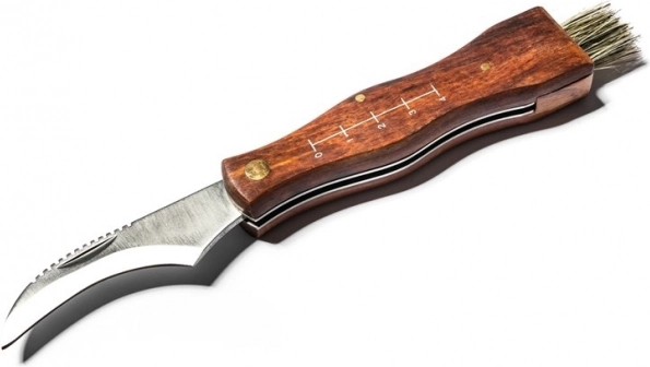 Praktisk svampekniv med sammenklappeligt blad, træhåndtag og integreret børste til nem rengøring af svampe. Takket være de kompakte mål, sammenklappelige kniv, målestok på håndtaget og karabinhage til fastgørelse er den ideel til enhver svampeentusiast. Der medfølger også et holdbart tekstiletui til sikker transport.