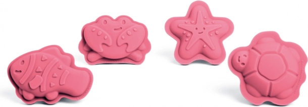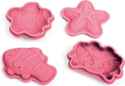 Lyserødt sæt med 4 silikoneforme fra Bigjigs Toys med havmotiver, der giver børn masser af kreativ leg i sandkassen og ved vandet. Fremstillet af 100% silikone, som er varme- og pletbestandig, nem at rengøre og let at trykke ud af. Inkluderer en bomuldspose til praktisk opbevaring. Velegnet fra 18 måneder.