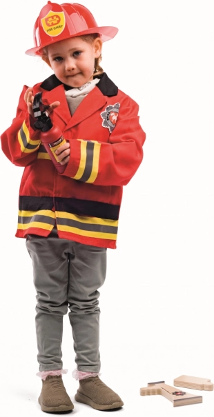 Børne-brandmandskostumet fra BIGJIGS TOYS tilbyder alt, hvad små brandmænd behøver til en spændende redningsmission. Den klare røde jakke med stribede ærmer og emblem, justerbar hjelm (49–55 cm) samt tilbehør som brandslukker i træ, walkie-talkie og megafon giver legen et realistisk præg.