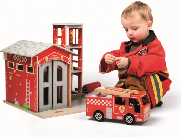 Pakken indeholder en brandslukker i træ, walkie-talkie og megafon – alt til autentiske brandmandsmissioner og endeløse historier.