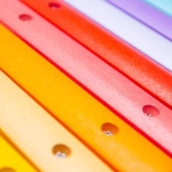 Sikre skruer sikrer fast fastgørelse af tangenterne, hvilket beskytter børnene under spil. Denne xylofon er ideel til udvikling af koordination og farveopfattelse.