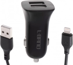 I pakken finder du et robust kabel til enheder med Lightning-stik. Takket være USB-portene kan der også bruges andre kabler.