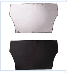 Dette praktiske magnetiske dækken er en ideel beskyttelse til forruden eller bagruden på din bil. Om sommeren reducerer det effektivt overophedning i kabinen og blokerer UV-stråling, mens det om vinteren beskytter ruden mod rimfrost og sne. Det er fremstillet af robust, uigennemsigtig polyester med et sølvfarvet termoisolerende lag på den ene side.