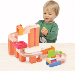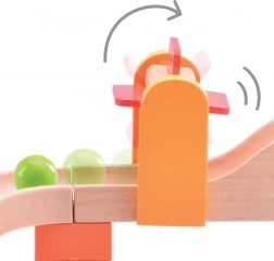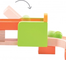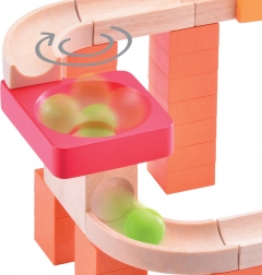 Byg, test og udforsk! TRIX kuglebane Karrusel og hvirvel har et smart forbindelsessystem, så den færdige bane altid er solid og stabil. Grundelementerne er lavet af holdbar træplast, mens selve banerne hovedsageligt er af massivt træ med en glat overflade. Den attraktive kombination af stærke farver og naturtræ fanger både børns og voksnes opmærksomhed.