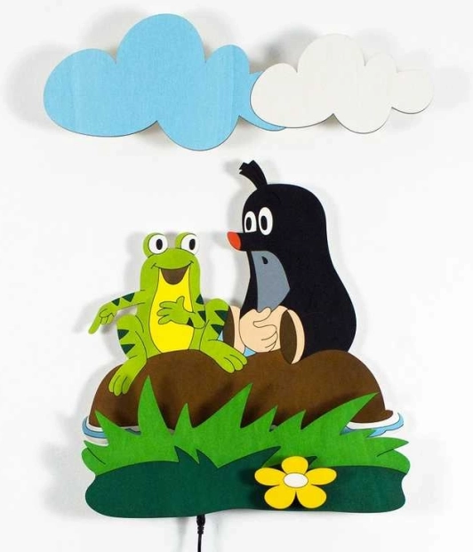 Børne LED-lampe Muldvarpen og frøen er en smuk vægdekoration, der giver en behagelig atmosfærisk belysning takket være energibesparende LED-teknologi. Med et effektforbrug på 1 W er den meget økonomisk og belyser elegant hoveddekorationen.