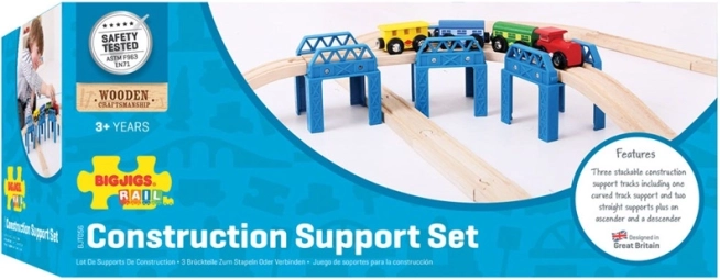 Nyd legen med en træbro-konstruktion fra det kendte mærke Bigjigs Rail. Dette produkt lader unge byggere drømme og skabe komplekse brostrukturer til deres togbaner. Sættet indeholder tre forhøjede dele og skinner til stigning og fald, som muliggør spændende og varierede byggemuligheder.
