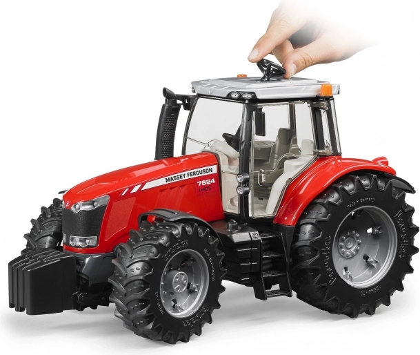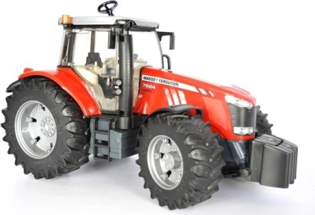 Denne trofaste model af Massey Ferguson 7624-traktoren er fremstillet i Tyskland af materialer i høj kvalitet, hvilket sikrer lang levetid og sikkerhed. Traktoren tilbyder bred funktionalitet takket være den opklappelige motorklap, åbningsbare døre og den glaserede kabine.
