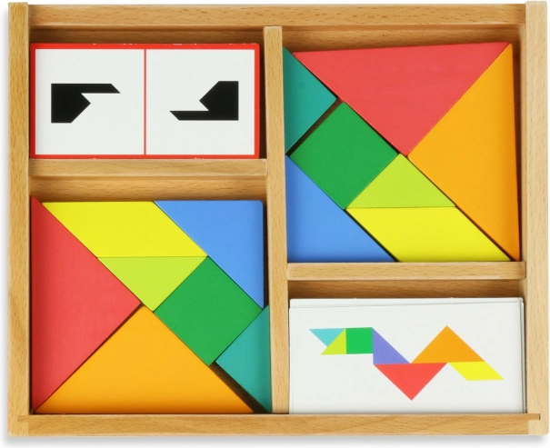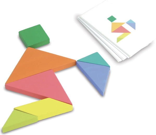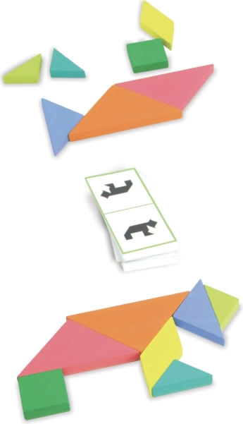 Et sjovt og smart spil for 1–2 spillere: den, der først lægger figuren efter kortet, vinder! Mere end 100 kort, 4 sværhedsgrader og 2 komplette tangram-sæt i kvalitets træ. Træner effektivt logisk tænkning og rumlig forestillingsevne hos børn fra 5 år og voksne.