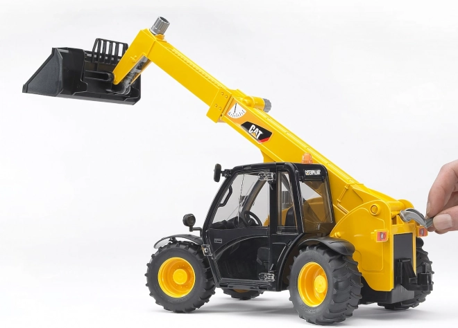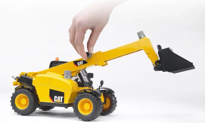 Den teleskopiske bom justeres nemt med betjeningerne – løft, udskydning og skovlens kip for realistisk lastning og aflæsning af materiale.