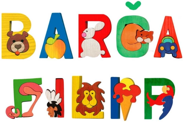 Fremstillet af massivt træ, der sikrer holdbarhed og lang levetid. Overfladen på bogstaverne er belagt med sikre farver.