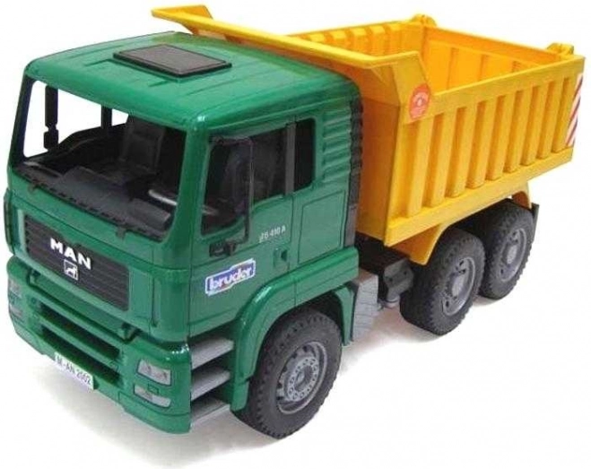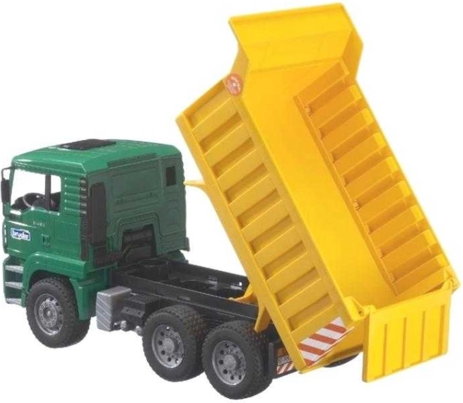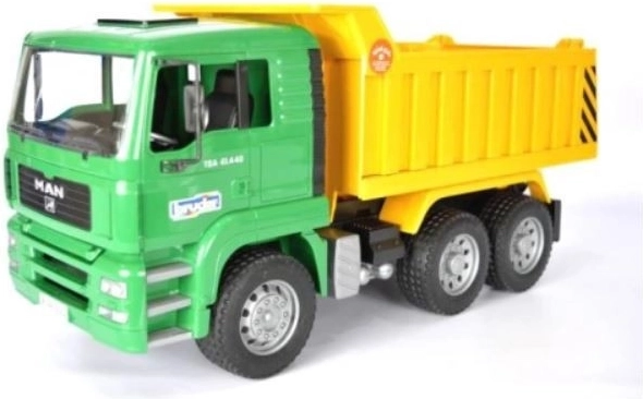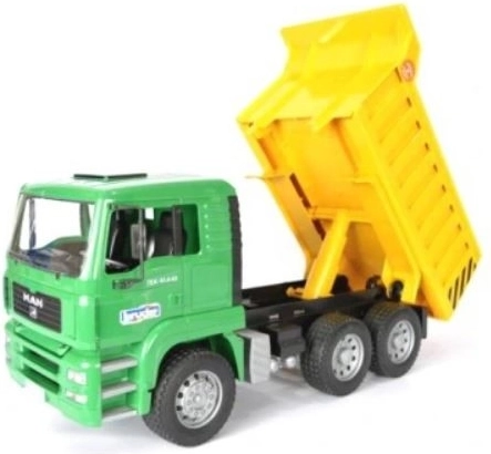 Den fuldt funktionsdygtige plastmodel BRUDER MAN tiplastbil i skala 1:16 er et godt valg for alle børn, der elsker byggepladser og realistisk leg. Kabinen kan vippes for at kigge på den detaljerede motor, sidespejlene kan klappes, og ladet løftes nemt for at tippe løst materiale af.