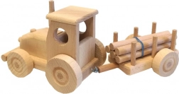Opdag skønheden og enkelheden i denne omhyggeligt forarbejdede trætraktor med trailer. Dens glatte overfladefinish bringer et strejf af natur ind i dit hjem. Traktoren er robust og uden skarpe kanter, hvilket gør den til et sikkert valg for børn fra 3 år. Dens præcise design og bevægelige dele øger attraktiviteten og interaktionen under legen. Dette produkt er ikke kun holdbart, men også indbydende til kreativ leg, både derhjemme og i sandkassen.