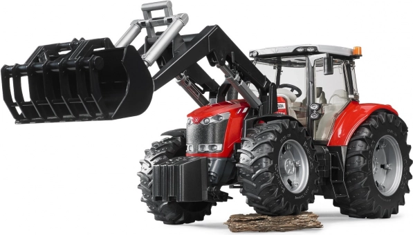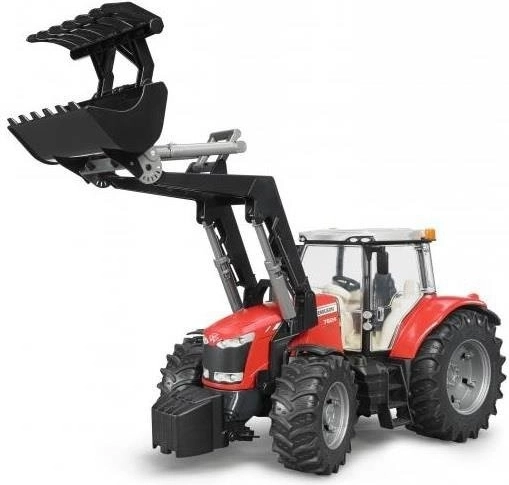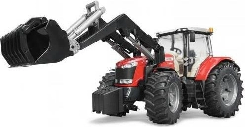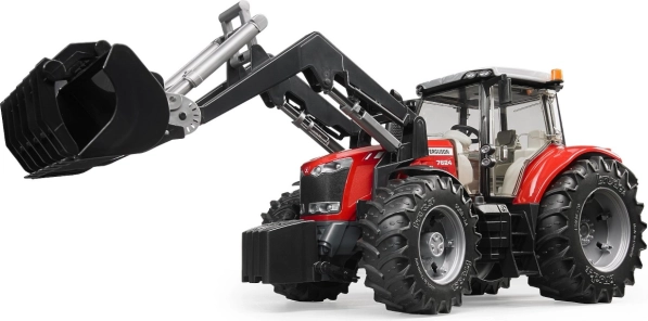 Traktor Bruder Massey Ferguson 7624 med frontlæsser er en tro kopi af en kendt landbrugsmaskine. Denne model er lavet af høj kvalitet ABS-plastik og polykarbonat, hvilket garanterer dens lange levetid og holdbarhed under leg. Traktorens hovedfunktioner:
