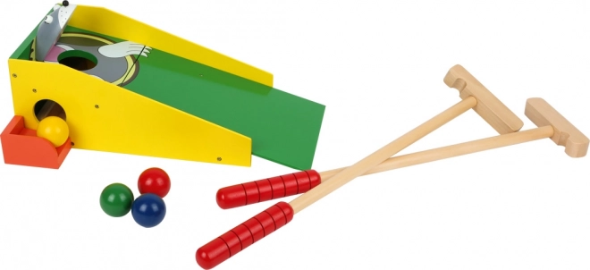 Minigolf til børn med holdbar trækonstruktion og Muldvarp-motiv udvikler koordination og fingerfærdighed. Indeholder 2 køller og 4 bolde.