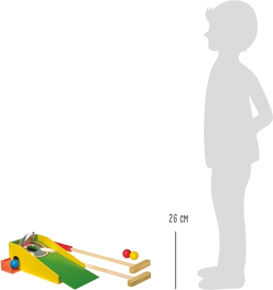 Nyd massser af sjov med denne minigolf i træ. Banen er designet til, at børn kan udvikle deres motoriske færdigheder og lære præcisionsslag. Spillet går ud på at sigte og slå bolden, så den rammer Muldvarpens mund, hvilket gør legen sjov og engagerende.