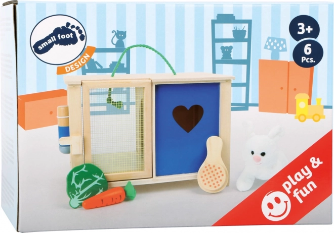 Med Small Foot-sættet får børn deres egen “kælekanin”, som de kan passe helt bekymringsfrit. Trækrybben måler 29 × 19 × 20 cm og har funktionelle elementer, så rollen som dyrepasser føles så realistisk som muligt, og den bløde kanin motiverer til omsorgsfuld, nænsom leg.