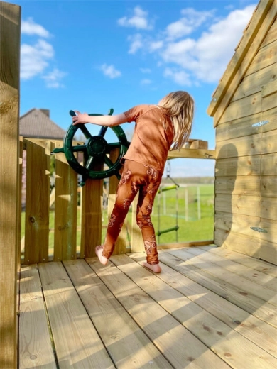 Forvandl enhver krog til dækket på et piratskib! Det store Jumbo-ror til børn med en diameter på 53 cm fanger straks opmærksomheden og trækker børn ind i legen takket være lydeffekten ved drejning. Perfekt til haven, legepladsen, klatrestativet og børneværelset.